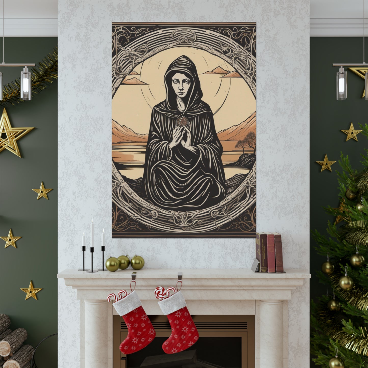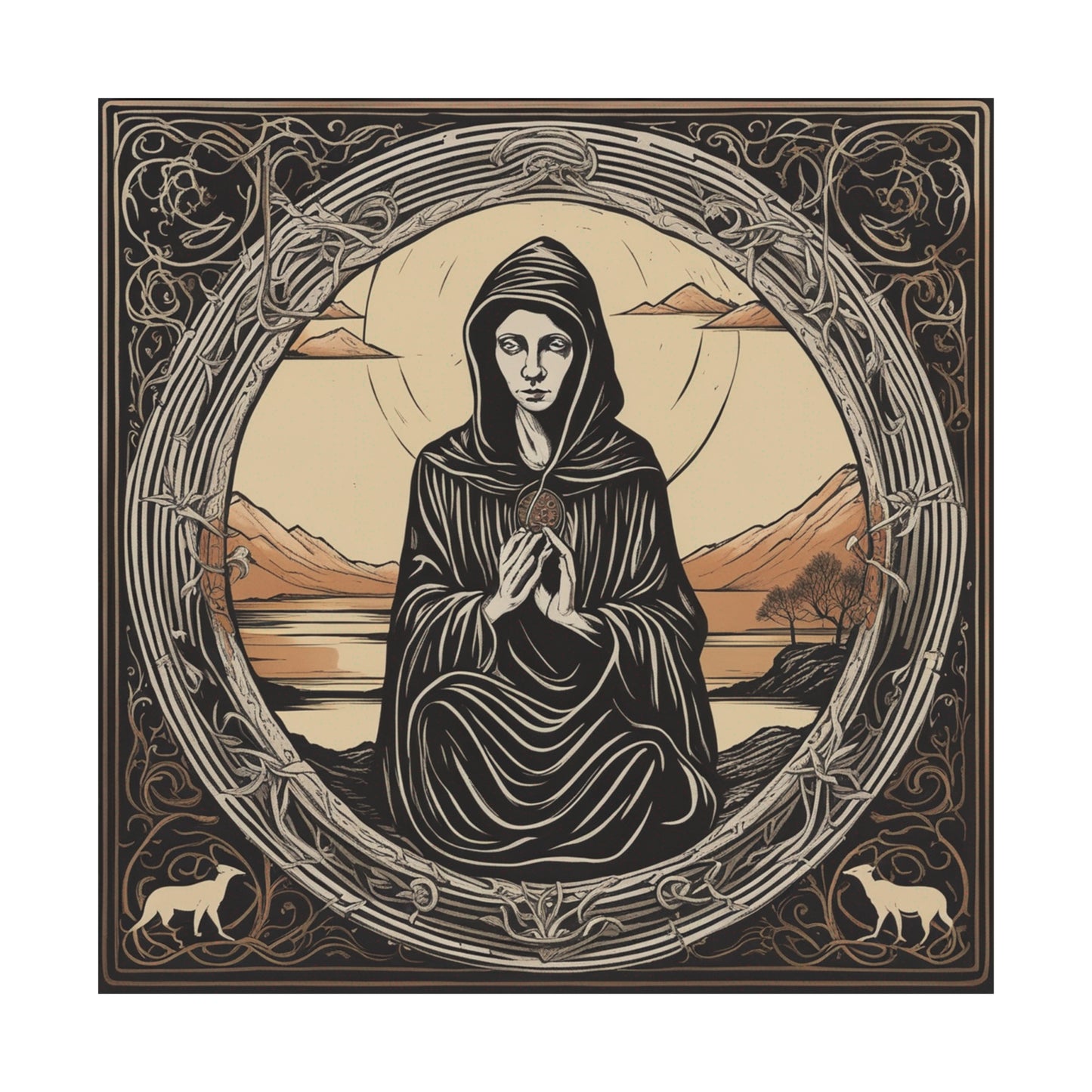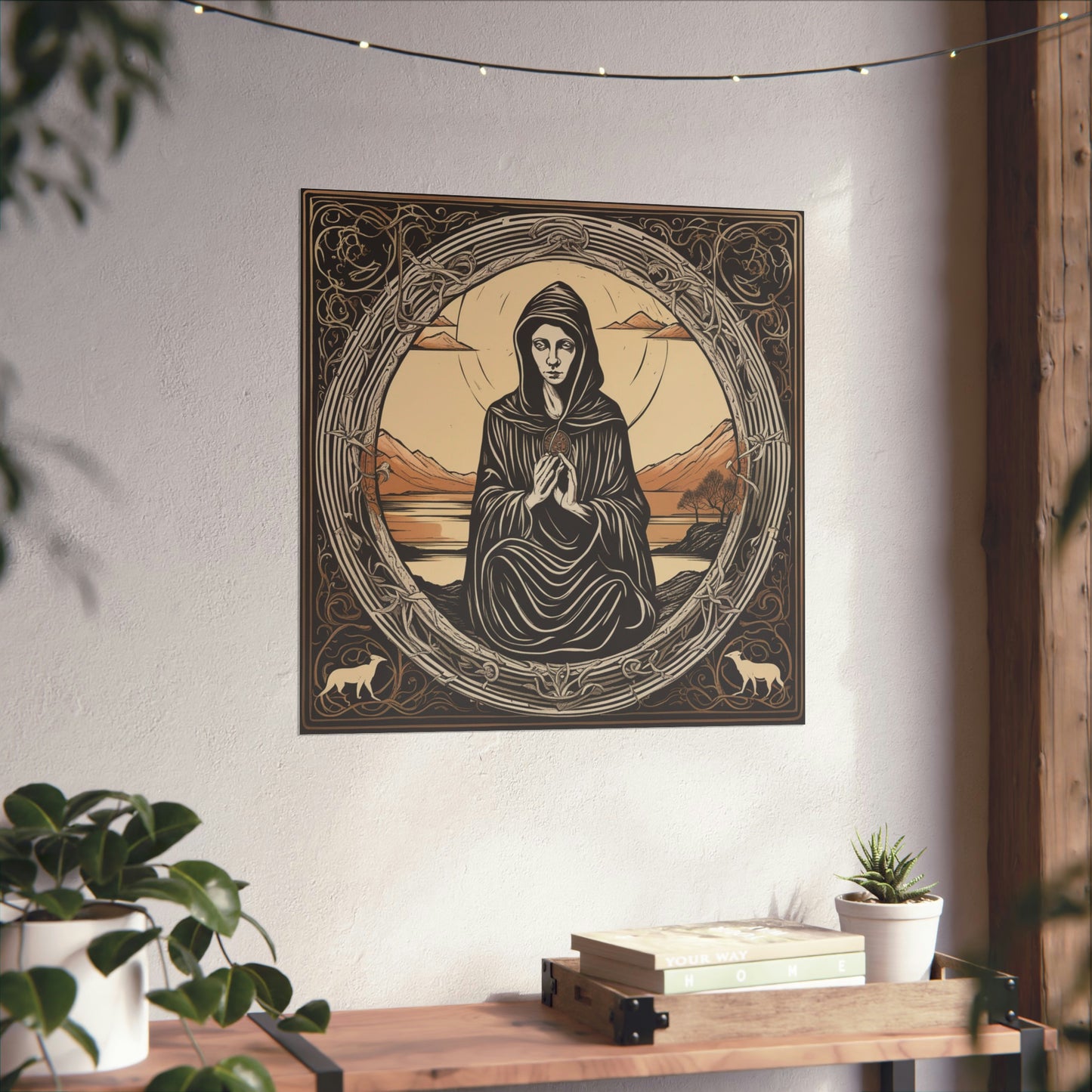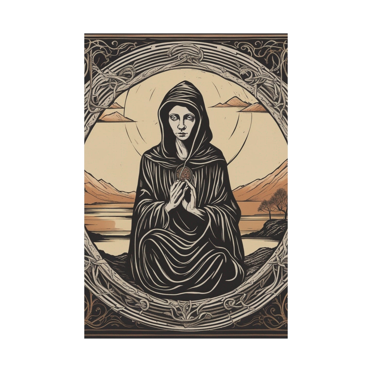This poster is a hand-made, high quality print of Elke Vogelsang's interpretation of The Hermit tarot card. Fans of tarot cards can hold the famous hermit in their hands and display it proudly in their own space. Hang it in a living room for true-to-tarot colors and ambiance, or use it in meditation areas and altars.Share