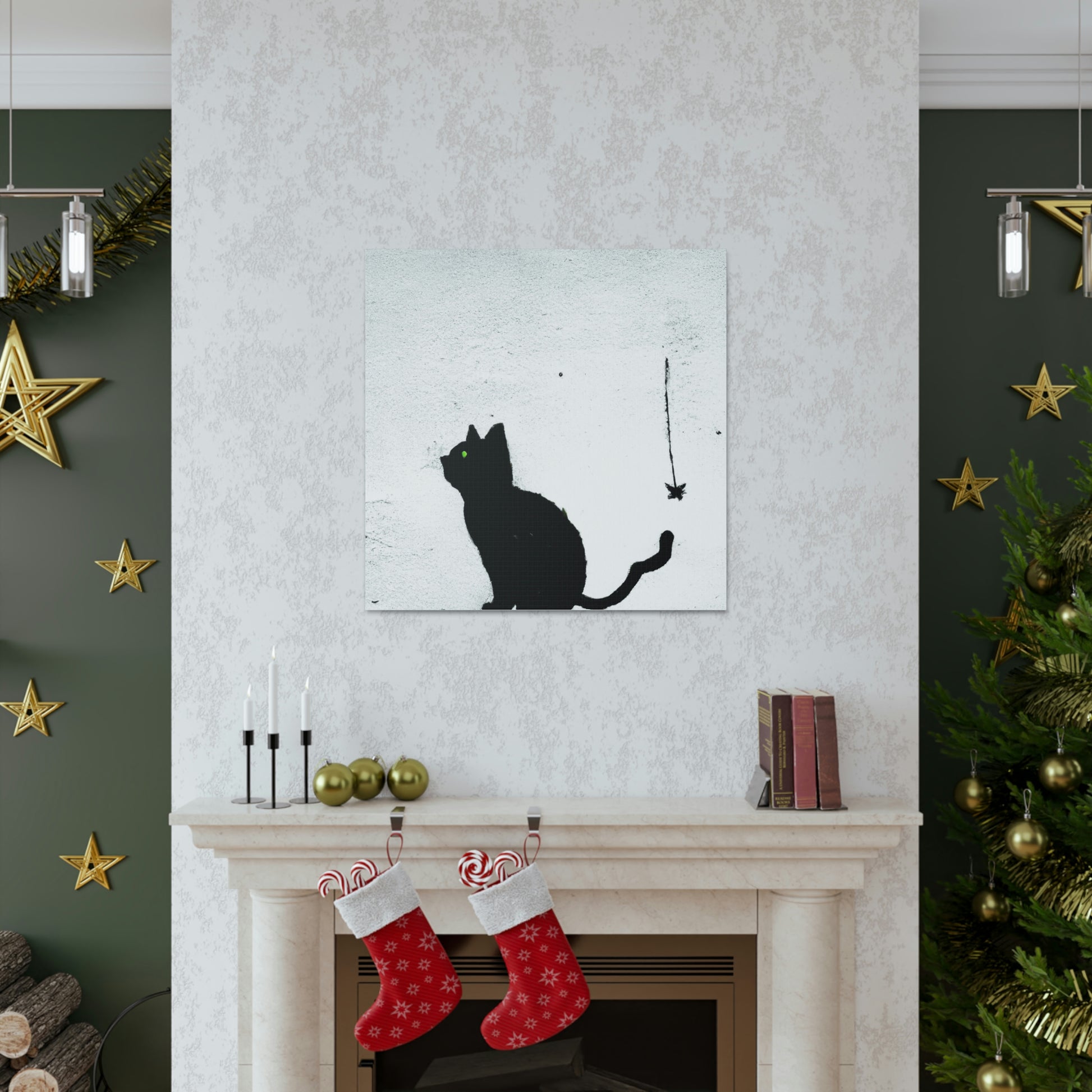 "Banksy-Inspired Wall Canvas Print Featuring A Black Cat" by PenPencilArt