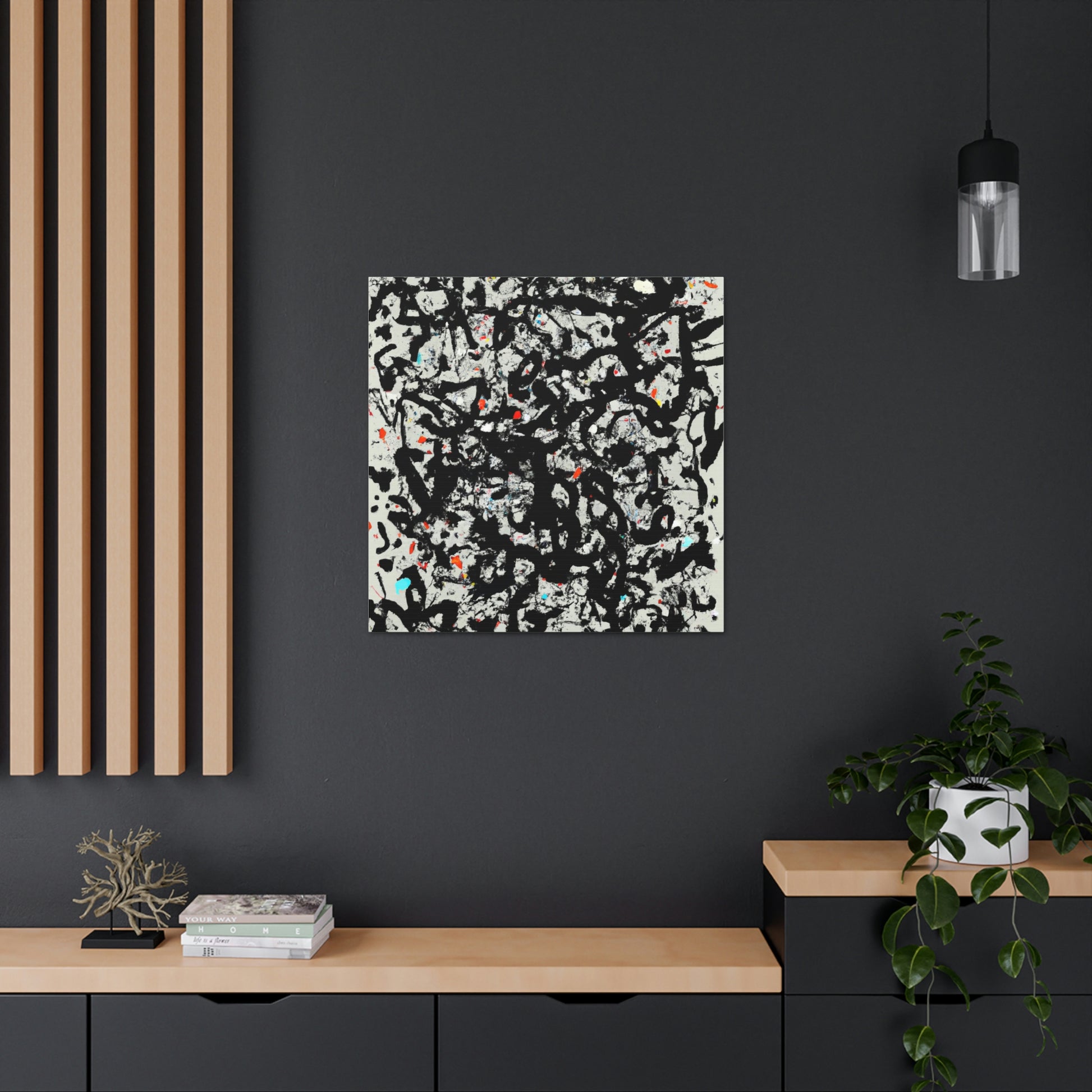 This handcrafted giclee print canvas was inspired by one of the most famous works of artist Jackson Pollock, the master of abstract expressionism. His art created an entirely new visual language and continues to be regarded as some of the most powerful and influential art of the 20th century. Now you can bring home a piece of history with our print canvas that pays homage to the late great artist.High Quality Print Canvas
