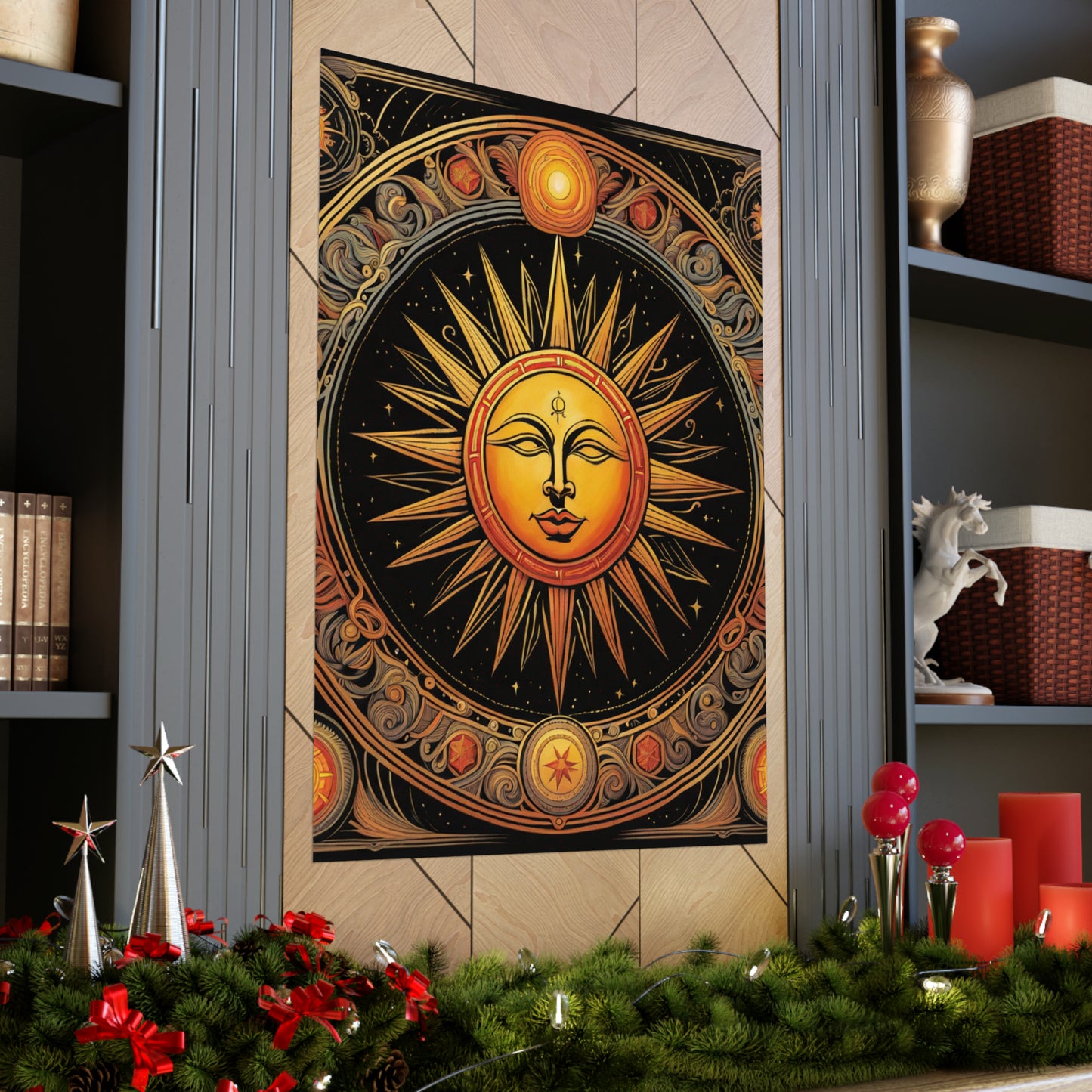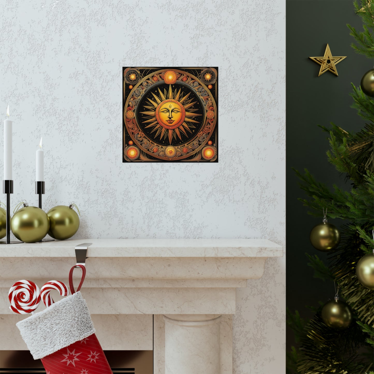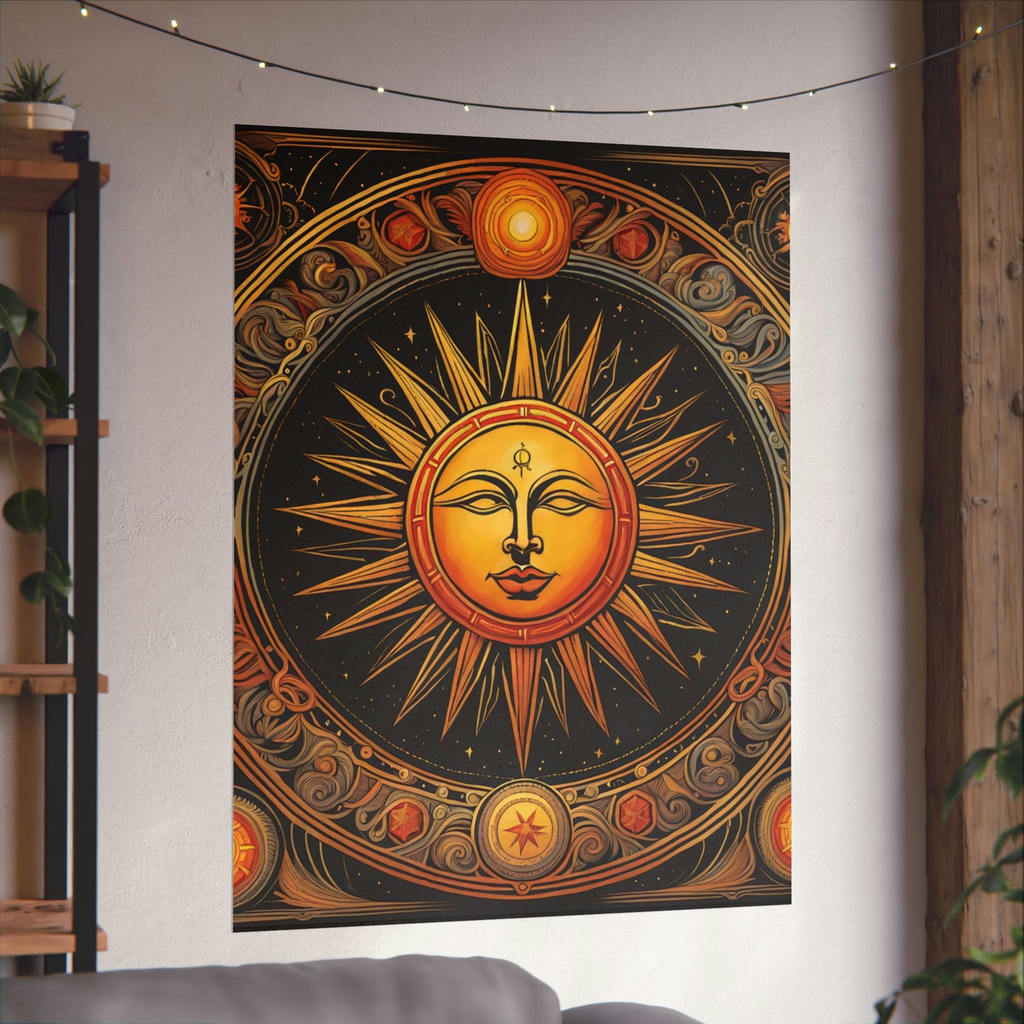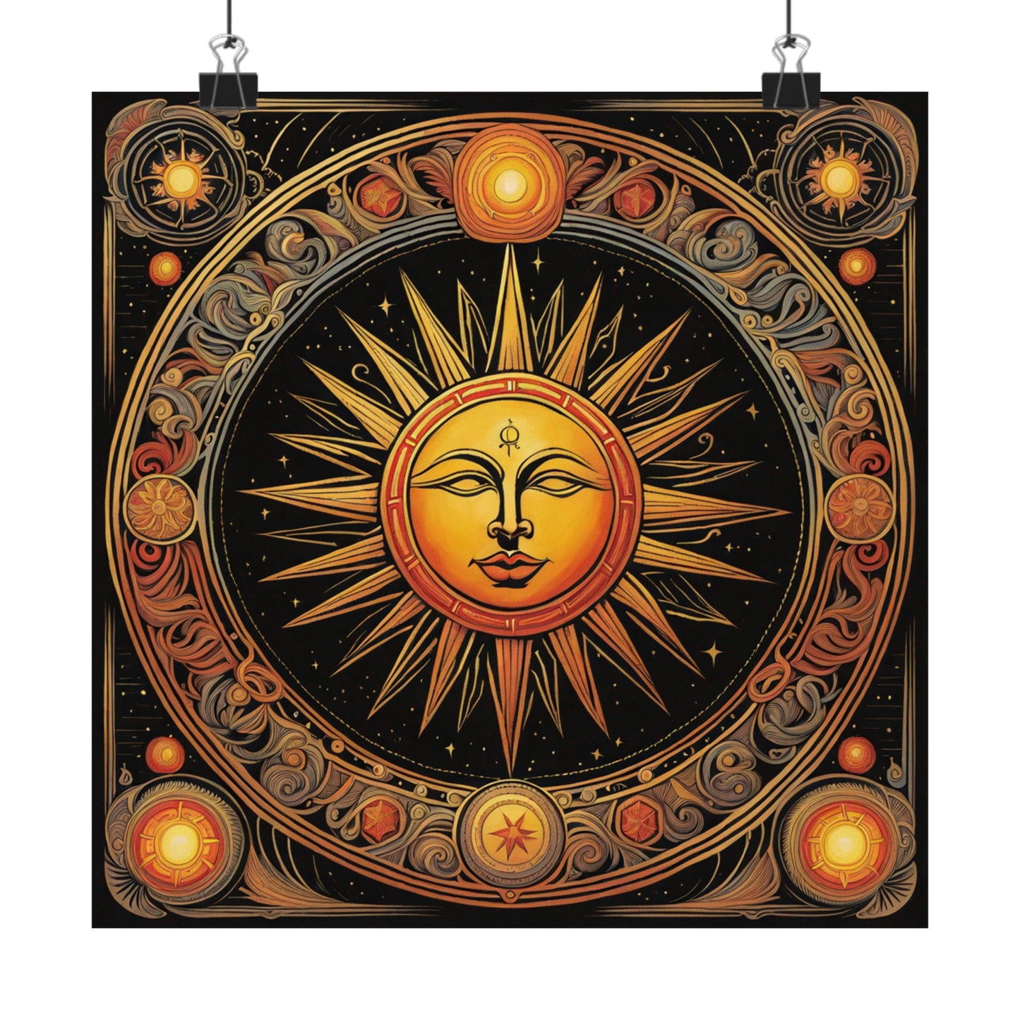 Featuring a modern giclée printing technique, this poster is created at the highest possible quality. The use of this modern printing style and high-quality inks means that each poster is truly unique to the home décor market. The high-resolution printing leads to an immaculate finish with crisp edges and accurate colours. The Sun print poster is the perfect canvas to be hung proudly in any living space.Symbolism for a Spiritual Environment