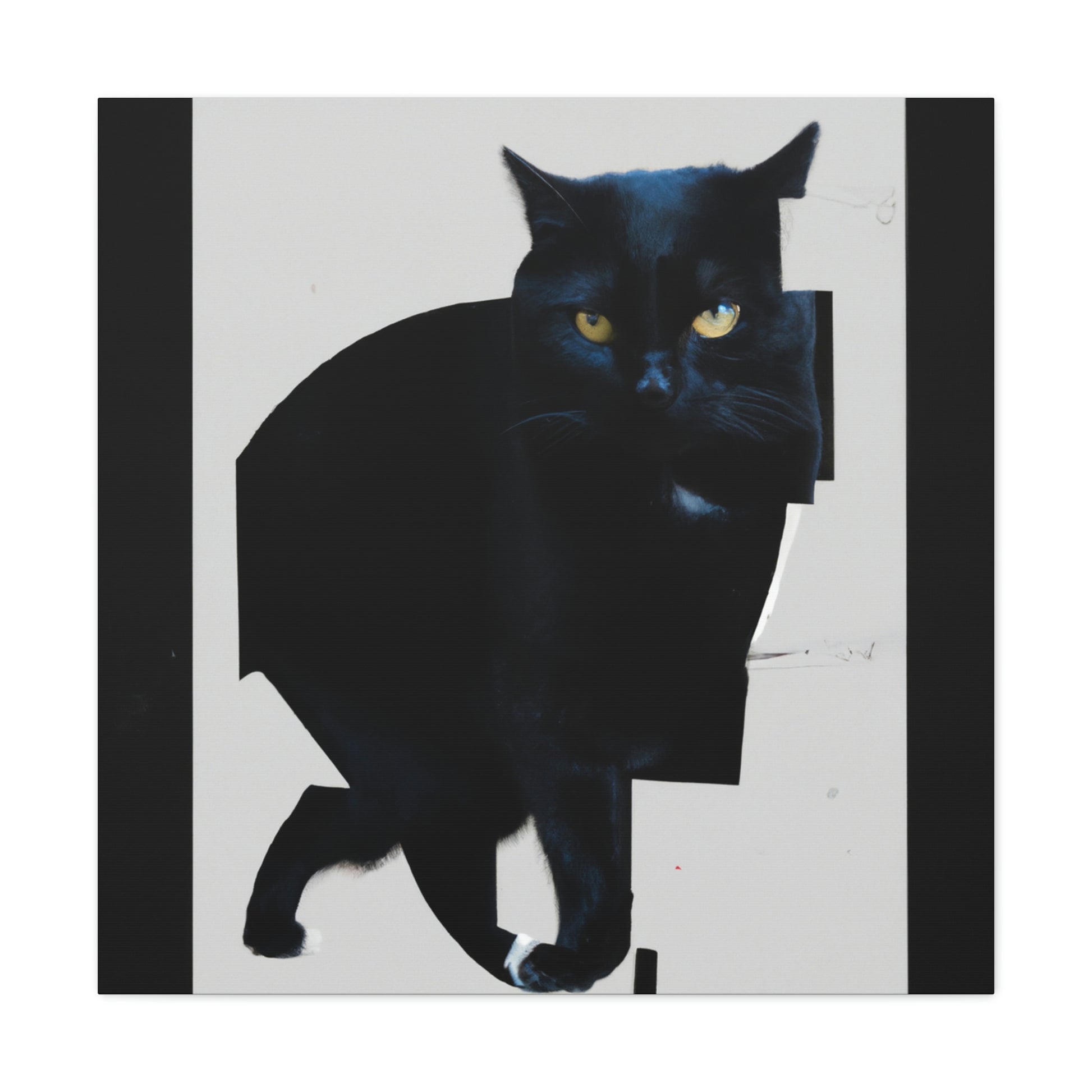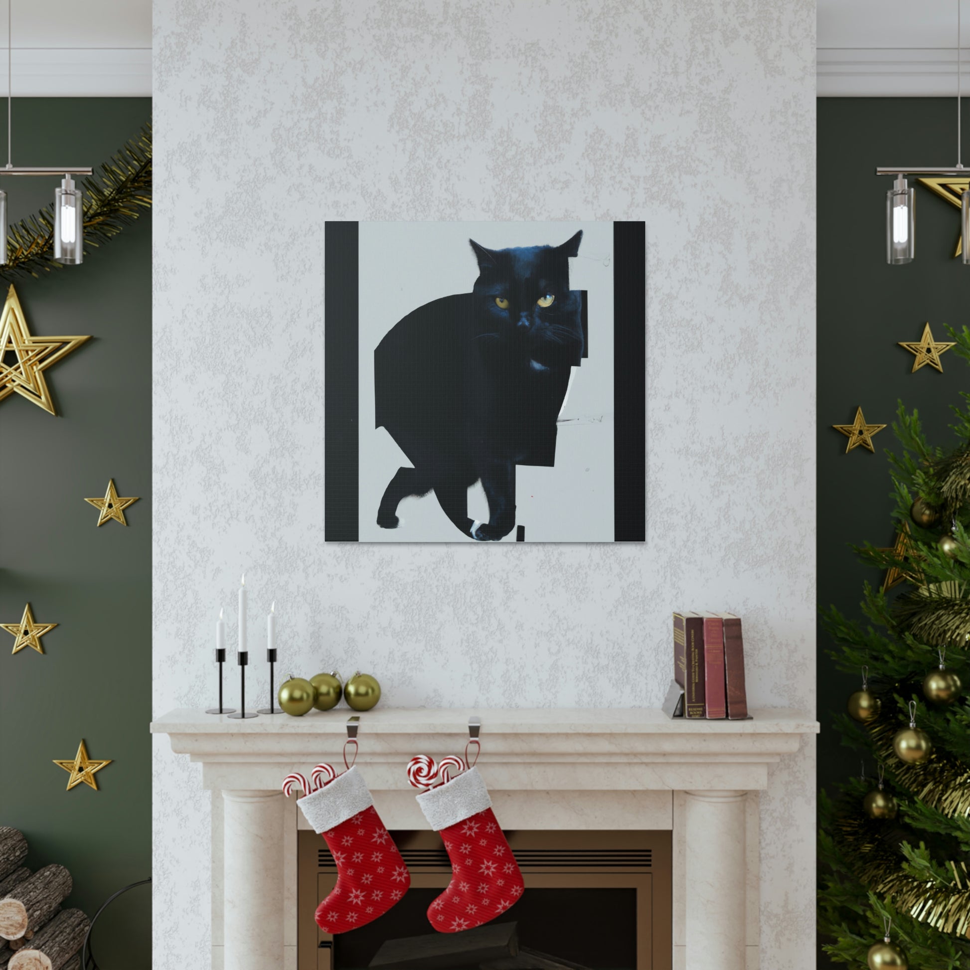 "Mimmo Rotella-Inspired Black Cat Canvas Print" by PenPencilArt