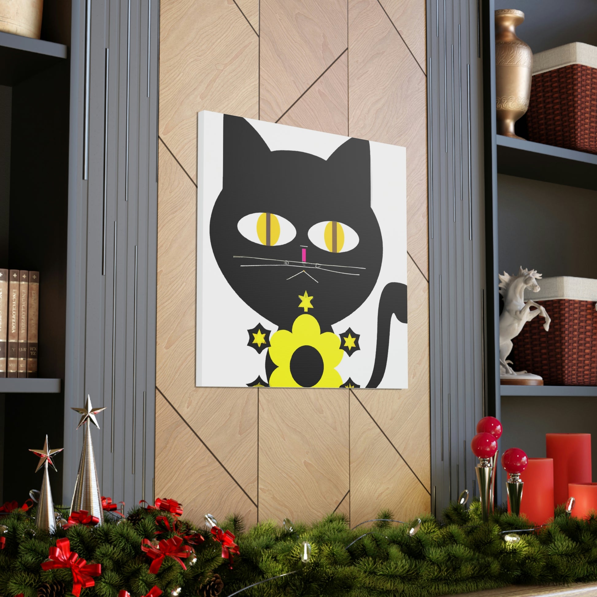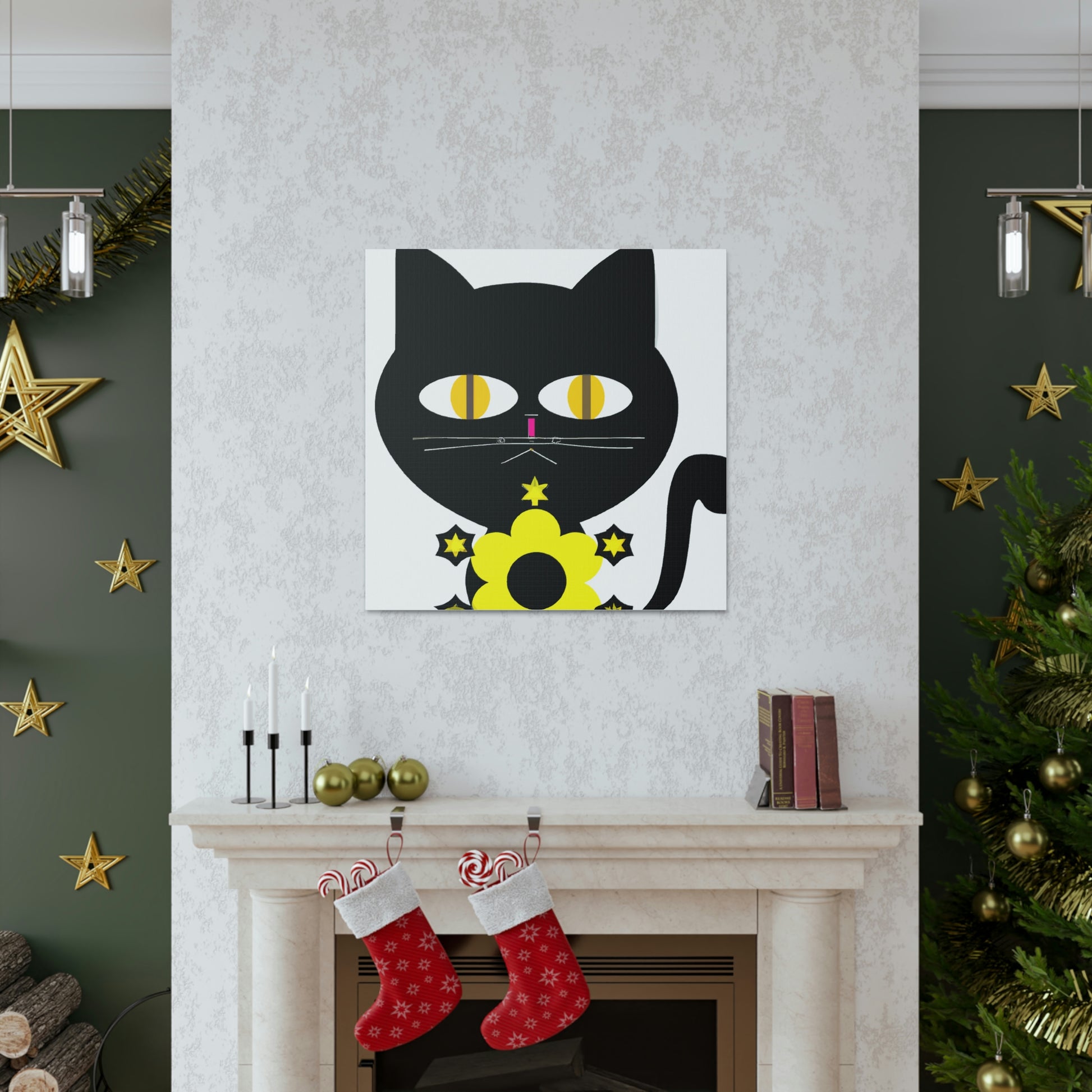 "Takashi Murakami-Inspired Black Cat Canvas Print" by PenPencilArt