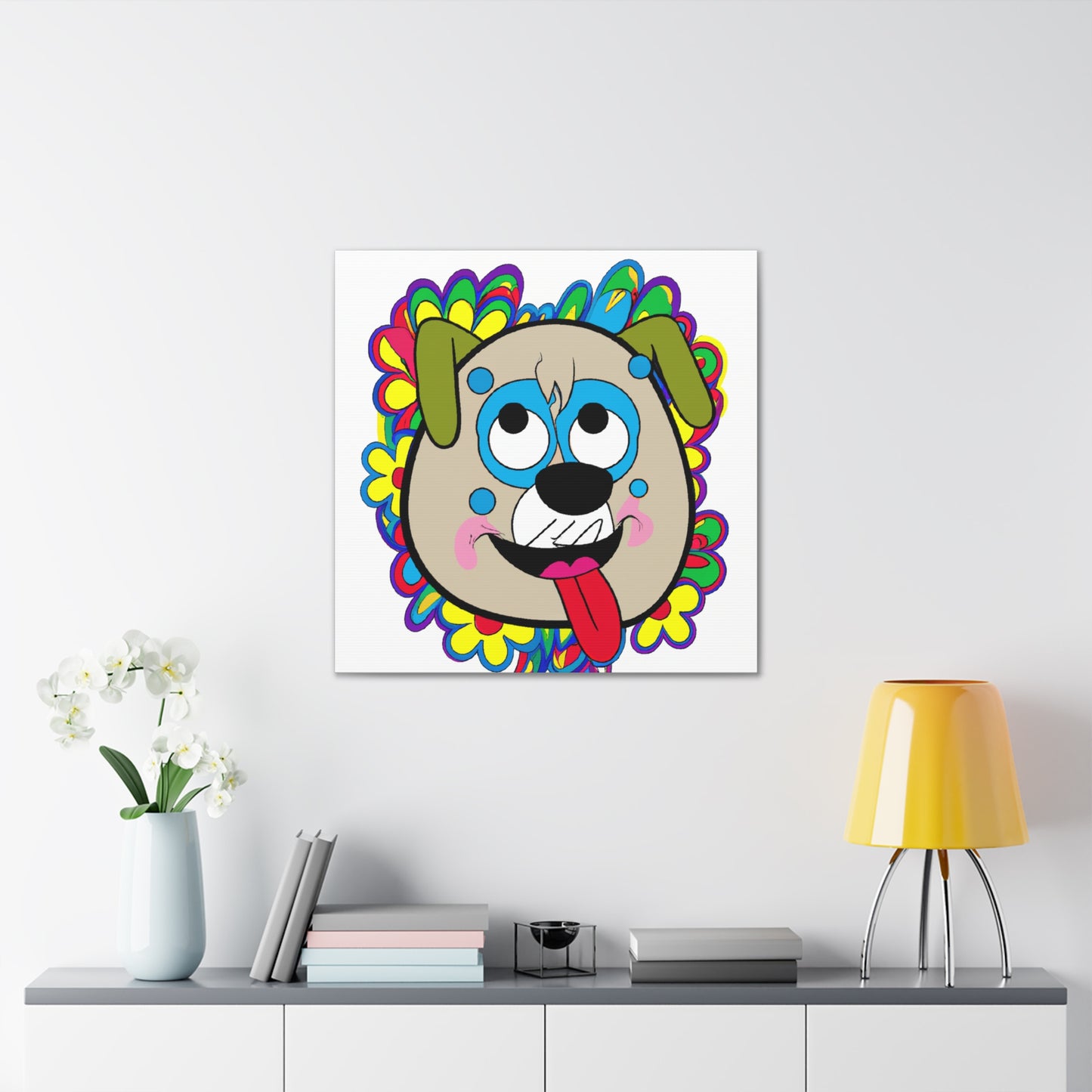 It’s the perfect way to show your love for your pet, or an inspiring gift for any pet lover. Ideal for any pet owner who appreciates the art of Takashi Murakami and wants to express their pet’s unique personality in a thoughtful, creative way. #canvasprint #happydog #takashimurakami #petlovers #creativegift #doglovers #artlovers #wallart #interiordecor #homedecor #artwork #artistsoninstagram #originalart #museumquality and #premiumcanvas - Designed By PenPencilArtShare